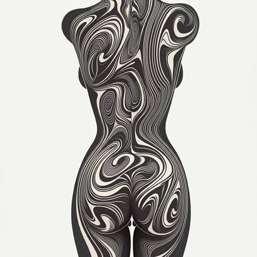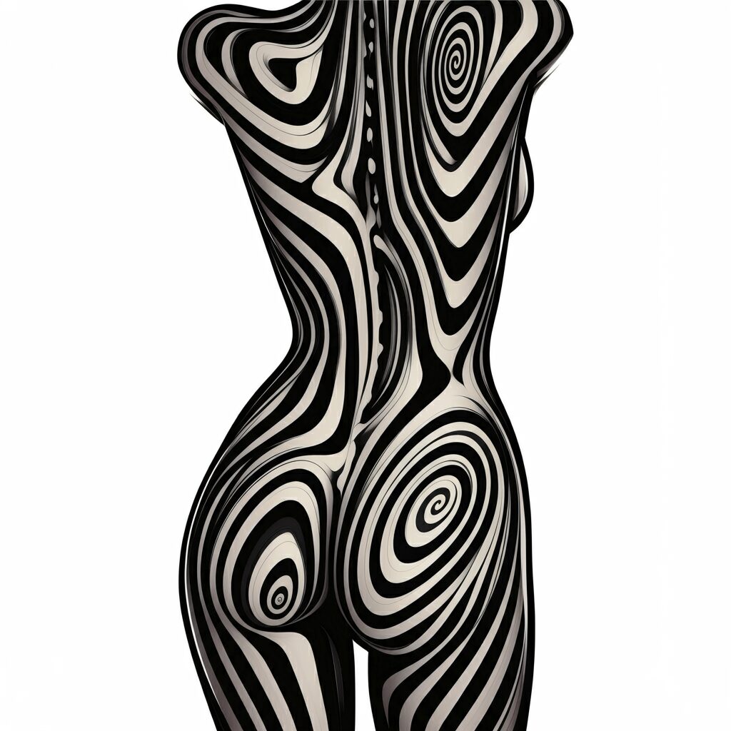 モノクロのボディペインティングをオプティカルにイメージ